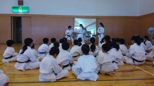 午前は組手審判学科講習と実技講習、少年少女組手講習会
