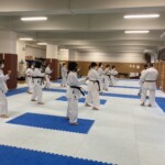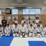 その後、体幹強化方法や空手の動きを利用したトレーニングを行いました。日々の練習に、それらの運動や空手の基本を行うことの大切さを話されました。